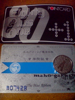 昨日くろたんにも心配されましたが、大学入ってから佑花はすこぶるやる気がありません。 高校の頃はまじめにがんばってたんだけどなぁ……授業居眠りなんて3年になって初めてしたし、故意に遅刻もしたことなかったし、早退も予備校ハードになってからしかしてなかったし。 私ほんとあの頃をどこに置いてきたんだろうか。 やっぱあれか。コレが世に言う理想と現実の相違ってやつか。 (たんに何かを使い切っただけという説も) だって大学ぬるいんだよ。世間的には入るの難しい学校だけど、一端入っちゃえばほんとぬるいんだよ。 くろちゃんに宿題ないの?って言われて、あー大学にも宿題ってあるんだーなんて思っちゃったし、友達(注:同じ大学別学部)はレポートに追われてるというのに、私はといえば授業内提出のレポートを2つ出しただけだし。 もっと勉強漬けになると思ってたから、正直拍子抜けしたんですよ。 まぁ言い訳はこの程度にしておいて。 今でもちゃんと大学院まで行きたいと思ってるし、行きたくて行きたくて必死に勉強して入った大学だし、もうちょっと頑張ってみることにするさ。うん。 そんなわけでバイトは暫くお預けかな。これ以上金を持ったら私きっと無益に遊んでしまうもの。 さぁて。勉強するかね。 ------------------------------------------------------------------ そういえば、昨日今更のように1200のキリリクはノマカプなのかBLなのかとくろたまに尋ねてみたところ、案の定というかなんというかノマカプでした。 いやん書き直し☆(もっと早く確認しようよ。つかそう思ってたんならノマカプで書きなよ) まぁ性別変わるだけで大して展開かわらないんじゃないかとか、どうせ書き逃げだろうとかいろんな声が聞こえてくるけど気にしなーい。 あははー短い分それぞれの視点で書いてみるかなーとか思ってるけどどうせ企画倒れだよねーうふふー(キモいからおやめ) そうそうせっかく途中まで(というか中盤~ラスト)書いたから、そのうち勘違いBLもアップすると思いますけどね(いい笑顔) 関係ないけど、心は~っていうCMを気にしてます。 ------------------------------------------------------------------ ちょ亡國覚醒カタルシスむつかしすぎるよ…… あれ完璧に歌えたらそりゃあもうすんばらしいんだろうけども。 まず歌詞が読めないよ(アリプロにはいつものこと) そして音に歌詞のっけらんないよ。 アリプロなめてたーー ------------------------------------------------------------------ アンナちゃんかっこいーvv そうかなんか忘れてると思ったら下妻が月末にやるってことだったのねー。 思ってたより下妻おもしろかったね!! やっぱふかきょんはこの映画の前後1、2年くらいが好きです。 行ってきましたよー。乙女喫茶。 くろたまと11時に池袋に待ち合わせして、超遊んでついさっき帰ってきました。 ほんと楽しかったです乙女喫茶。 そんなわけで、以下は本日の活動レポ(笑) 今日は全部で4軒の喫茶店に行ってきました。 (上の写真は、今日行ったとこのポイントカードでございます) 1軒目 アフィリア 魔法学園をコンセプトにした喫茶店です。 開店と同時に乗り込みました。一番乗りです。 スタッフの衣装がとってもかわいいのと、商品の説明書きの最後に、現代で言う○○ですと書いてあったことが印象的でした。 2軒目 乙女喫茶その1 男装の麗人が大好きな佑花のたっての希望で行ってきました。 場所がわかりづらかった(ある意味超わかりやすい)ので迷いに迷いました。 商品名が薔薇の園とか純真な君(これ微妙に違う)とかで笑えます。 ただカツラ着用は個人的にあんまり好きじゃないです。あそこの店は、音声だけなら非常に萌えると思います(私はね) 3軒目 ワンダーパーラー クラッシクで落ち着いたメイドカフェです。 当初行く予定なかったんですけど、近くの乙女喫茶の開店時間がずれたために急遽来店。 まぁ基本に忠実な感じでした。 (ここの店に入る前に球体関節人形の専門店みたいなとこにも行きました。なぜか妙にイザのフィギュアが多かった) 4軒目 乙女喫茶その2 ほんとここお勧めです。地下だから人目につかないし、ごはんおいしいし、スタッフさんおもしろいし、同人誌とか雑誌とかも貸してくれるし!! 隠れ家的な感じですごいよかったです。くろたまとふたりして気に入ってしまったので(開店から1時間30分ほど居座りました) 、また池袋に行った折にはぜひ行きます。 そして一通りの予定を昇華したので、いつものように乙女ロードを満喫し(途中うっかり私はひぐらしとアリプロの誘惑に負けてCD買っちゃいました 笑)、最近ミュにはまり気味なくろたまにアイスエンペラー を歌ってもらうためにカラオケへ!!(この時点で18時過ぎてます) うん。跡部のあの歌すごいや。 いえることはそれだけです。また歌ってくださいくろたん。 くろたまひとりにキャラソン(?)歌わせるのが悪い気がしたので、私はミーアのEMOTIONを。あれって何気に歌いやすいね。 で、カラオケを21時で切り上げた私たちなのです